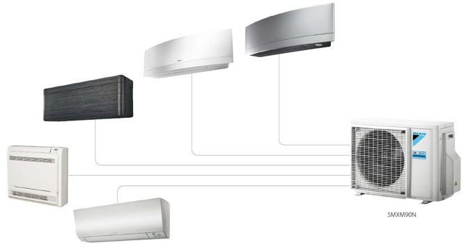 Bis zu fünf Innengeräte können über ein Multi-Außengerät betrieben werden